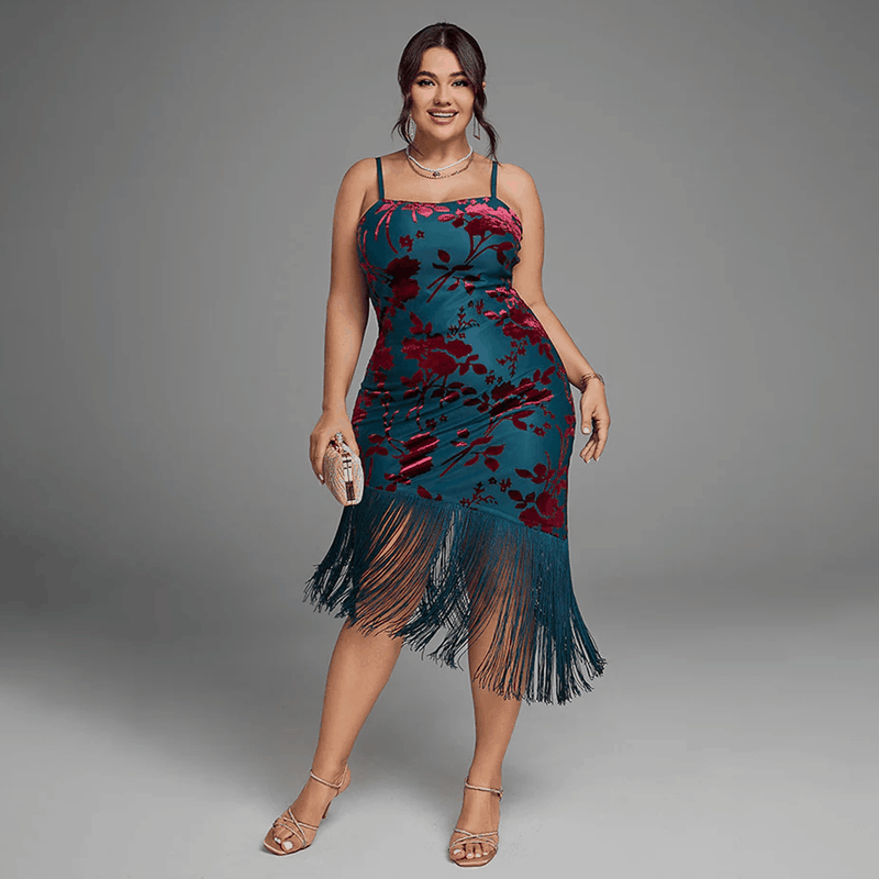 Large Size Long Sleeve V-Neck Sequined Fishtail Dress